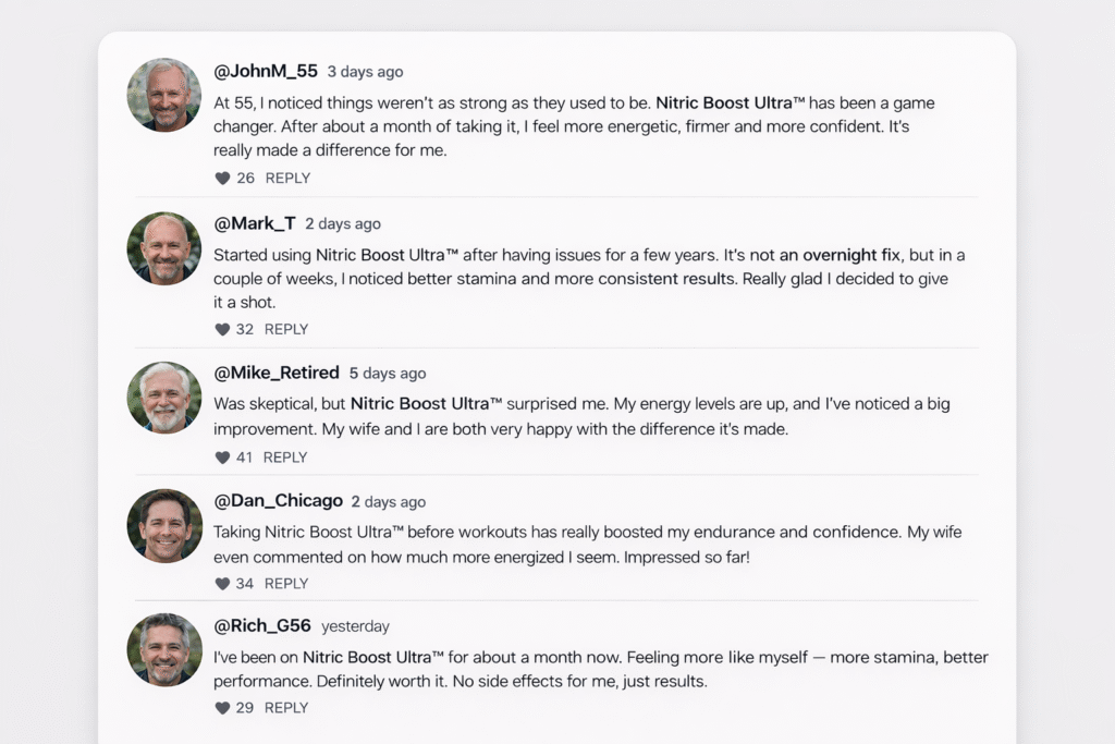 Choosing Nitric Boost Ultra™ means opting for a formula that doesn’t just target one aspect of health — it addresses the circulatory system, energy, and male vitality in a holistic, natural way.